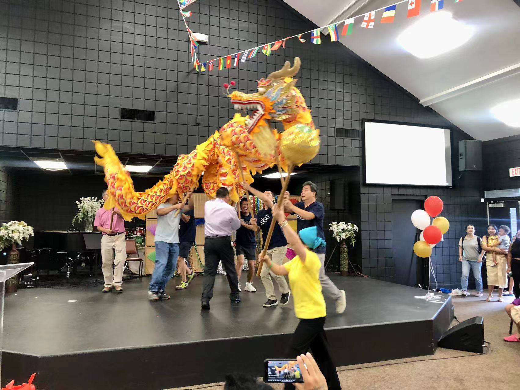 此次社区日活动不仅通过中国的舞龙、古典音乐、扇子舞、书法等展现中国文化,还有柬埔寨舞蹈、非洲舞、南美舞、芭蕾舞的表演,给参与活动的观众们展现了不同种族的舞蹈艺术特色,这些表演从侧面彰显了美国作为移民国家的多元文化和谐共生的特色。
