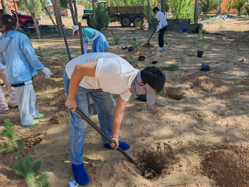 2024年暑期,由西安工程大学城市规划与市政工程学院土木工程、给排水科学与工程、风景园林、建筑环境与能源应用工程等多个专业学生组成的实践团,怀揣着对自然的敬畏与对未来的憧憬,踏上了前往库布齐沙漠的征途。库布齐,这片曾被誉为“死亡之海”的沙漠,如今在几代人的不懈努力下,正逐步绽放出生命的绿色。实践团成员们深知肩上的责任重大,他们带着专业知识与满腔热情,誓要为这片土地增添更多绿意。实践期间,团队成员们深入沙漠腹地,实地考察了当地生态修复项目,与治沙专家面对面交流,学习了先进的治沙技术和生态恢复理念;同时,实践团在“未来林”中国本部对外交流部主任金虎杰的介绍和指导下,了解了中韩未来林项目的开展历程与现实成就,并且参与了沙漠植树活动,亲身体验了从“沙进人退”到“绿进沙退”的艰辛与成就。