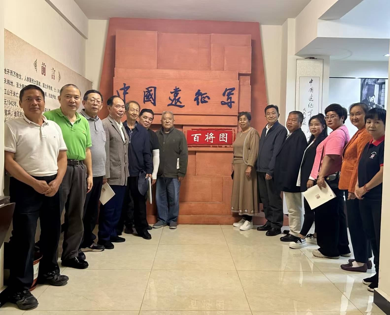 研讨会结束后,一起参观了中国远征军百将图展览馆,邵艳芳女士一一讲解,在“中国远征军百将图”几个威严的大字下,大家分别站立两旁,怀着对抗日英雄的崇拜之心,合影留念。